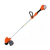 Благодаря внешнему расположению аккумулятора удалось уменьшить габариты и вес триммера. К числу важных преимуществ относится оптимальная балансировка, что способствует работать без усталости в течение длительного периода времени. За счет применения мощного современного электродвигателя достигается повышенная производительность, минимизируется уровень шума и исключается риск загрязнения окружающей среды. Также существенным «плюсом» является возможность поддерживать обороты устройства на одном уровне, даже при значительной потере заряда аккумулятора. Аккумулятор и зарядное устройство не входят в комплект.